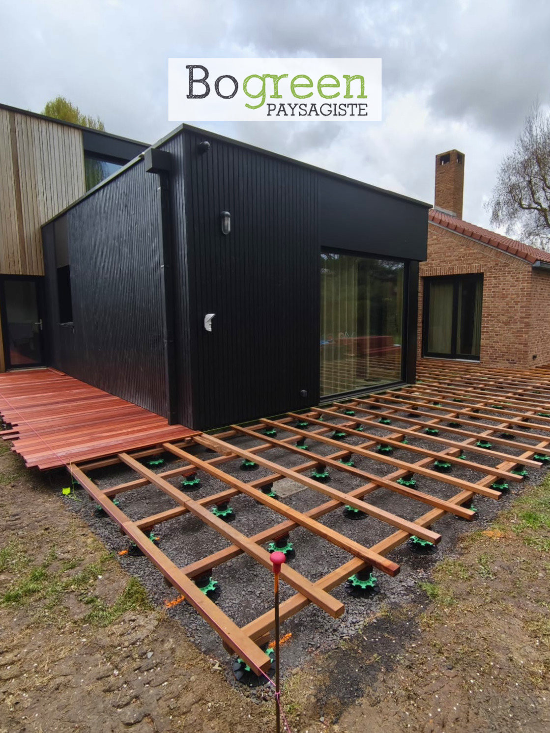 Installation d’un double lambourdage en bois exotique + plots PVC