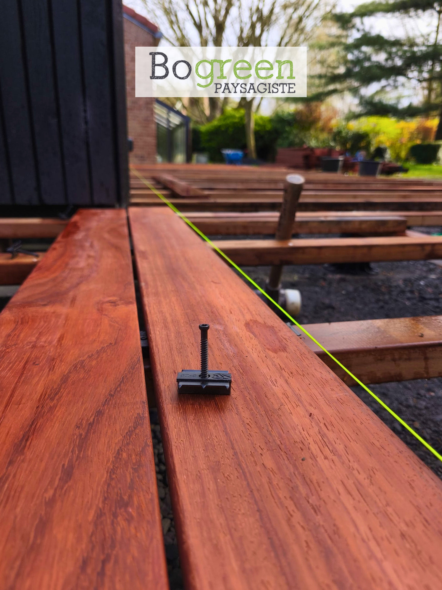 Pose d’un plancher en bois exotique avec clips invisibles de chez @cobrafastener_france pour une finition nette